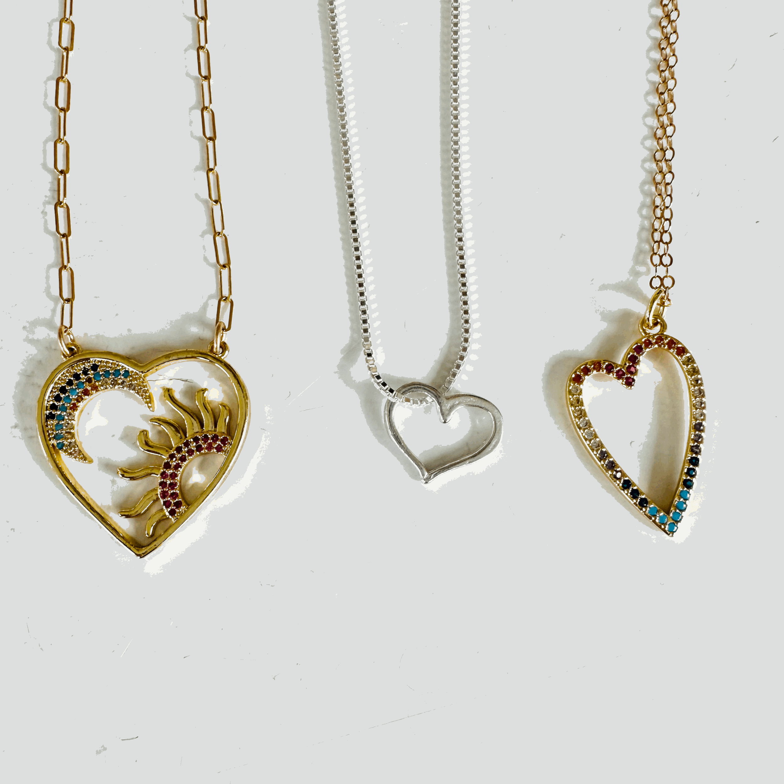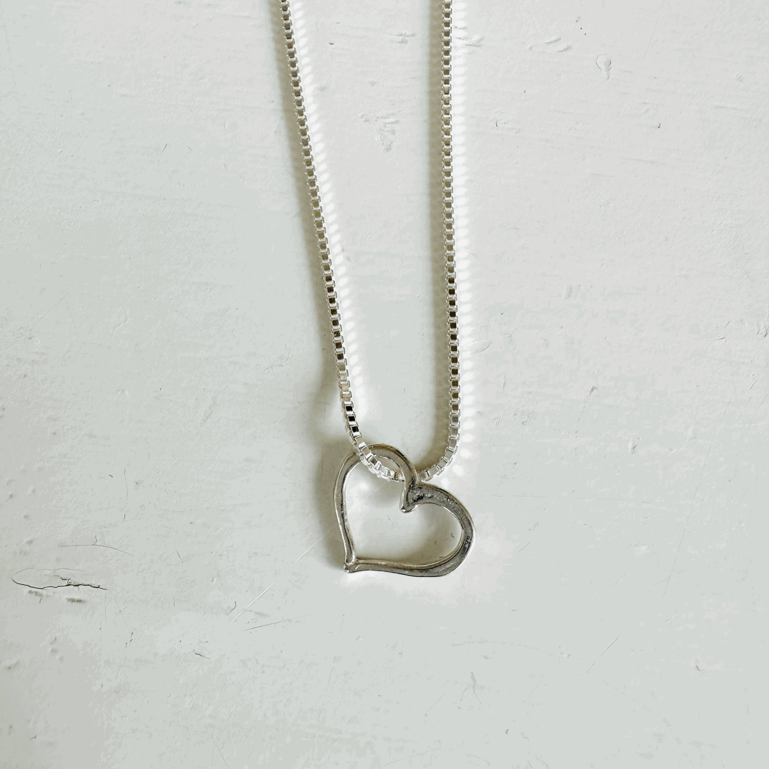 Shop › Open Heart Necklace Image 1 of 3 Image 2 of 3 Image 3 of 3 Open Heart Necklace $28.00 Only 1 available Keep your heart open and always look to spread love.18” sterling silver chain with sterling silver heart. Add To Cart Added! Keep your heart open and always look to spread love.18” sterling silver chain with sterling silver heart.